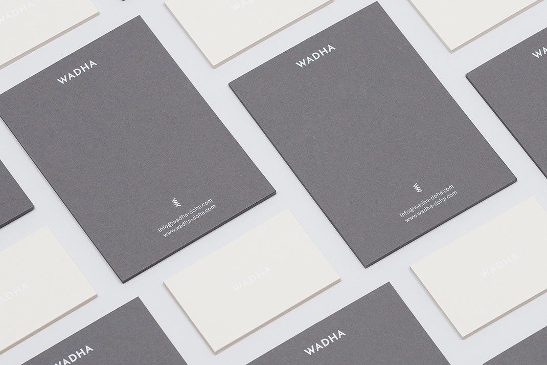 Wadha是一個伊斯蘭女性時尚品牌,由Wadha Al Hajri于2010年在卡塔爾多哈市創立。和達服裝的特點是獨特的面料和裁剪,現代,干凈和輕微不規則的形狀,和單一的顏色。這種美感體現在Wadha的品牌形象上,該品牌由英國平面設計工作室Two Times Elliott設計,不僅以排版形式和堅實的調色板設計,而且在材料選擇、印刷完成和結構方面也有所體現。這將鏈接諸如notecard、袋子、標簽和名片之類的資產。