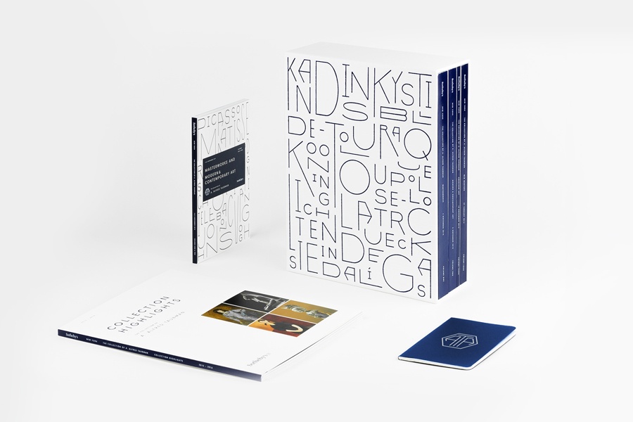 Franklyn的設計理念是以陶伯曼鐘愛的中世紀現代美學為靈感的定制印刷術為基礎,并符合蘇富比對曼哈頓展覽空間的重新設計,這一設計旨在喚起《紐約時報》對陶伯曼的鮑豪斯美學的描述。從相對較小的四卷400頁的拍賣小冊子,到包裹蘇富比紐約總部外部的兩層乙烯基大橫幅,它可以輕松地擴展到各種各樣的抵押品。