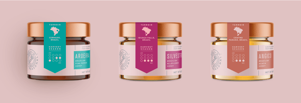 蜂蜜的風味和顏色是該位置所特有的,所有這些都在蜂蜜包裝設計上清楚地表達出來。此外,收獲季節(jié)對于蜂蜜的風味和特性至關重要,蜂蜜的不同特征也體現(xiàn)在蜂蜜的風味和特性上。